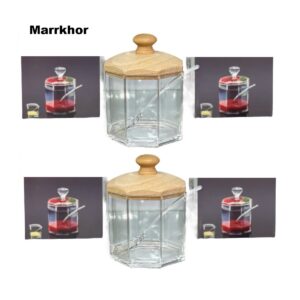 Marrkhor 1-Piece Honey Jar with Spoon and Lid, Sealed Wide Mouth Honey Storage Jar with Wooden Lid, Honey Dispenser for Kitchen and Breakfast